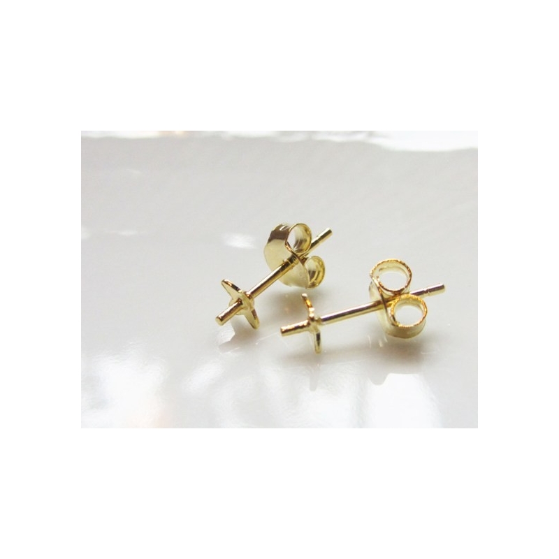 Ørestikkere af sterling sølv - guld farvet. Der medfølger et par plastik ørestoppere. Str. på ring ca. 5 mm. Str. på pind ca. 10 mm. Prisen er for et par.
