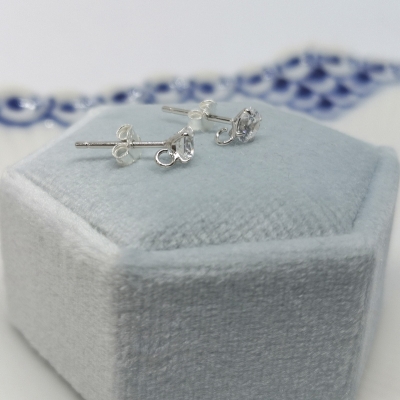 Ørestikkere med grabbeindfatning af forgyldt sterling sølv med sten af herkimer diamond. Str. på pind: ca. 10 x 1 mm. Str. på sten: ca. 7 x 7 mm. Prisen er for 1 par.