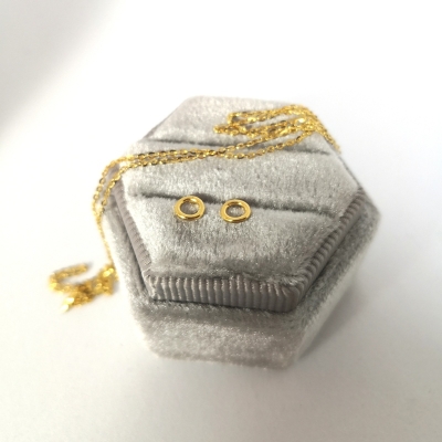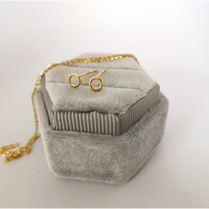 Ørestikkere af forgyldt sterling sølv. Str. på pind: ca. 9 x 0,5 mm. Str. på skål: ca. 3 mm. Prisen er for 1 par.
