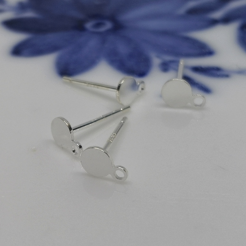 Ørestikkere af sterling sølv med kugle og øje til et vedhæng. Str. på pind: ca. 10 x 0,7 mm. Str. på blomst: ca. 4 x 4 mm. Hul str. på øje: ca. 1,2 mm. Prisen er for 1 par.