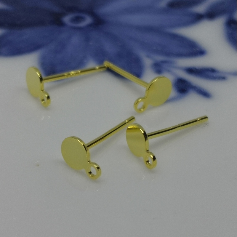 Ørestikkere med zirconia samt øje til vedhæng. Ørestikkerne er af forgyldt messing. Pinden er forgyldt sterling sølv. Der følger ikke bagstopper med, men der er vedlagt et par plast stoppere. Str. ca. 7 x 8 mm. Hul str. i øje ca. 1,2 mm. Tykkelse/længde på pind - 0,9 mm. / 13 mm. Prisen er for 1 par.