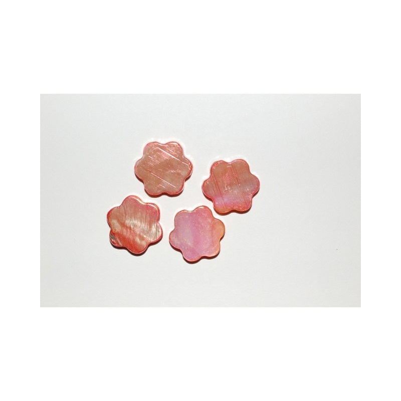 Flade blomster af orange perlemor. Str.: ca. 14 x 3 mm. Prisen er for 4 stk.