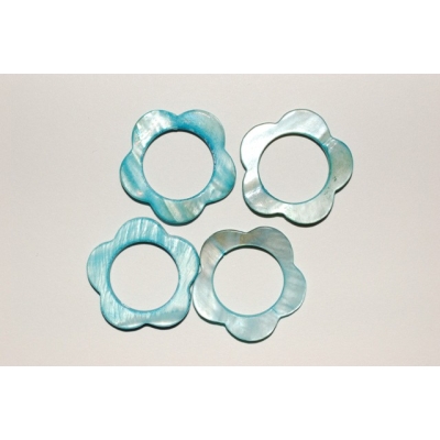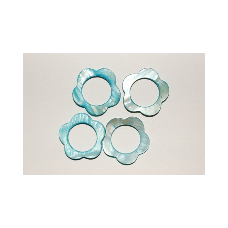 Flade blomster af lyserød perlemor. Str.: ca. 14 x 3 mm. Prisen er for 4 stk.
