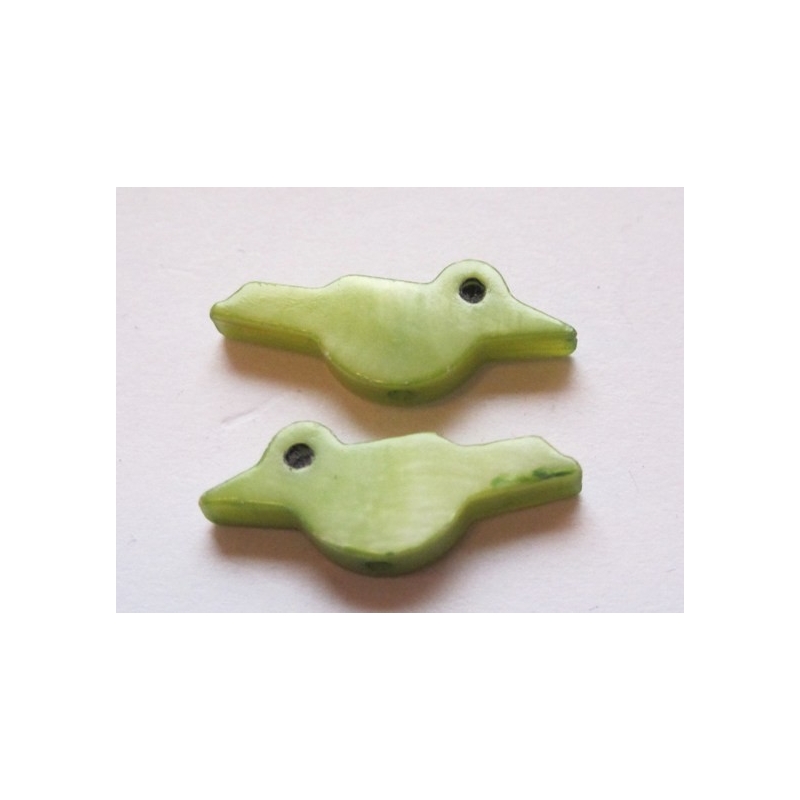 Fugle af lilla perlemor. Str. ca. 18 x 8 x 3 mm. Hul str. ca. 1 mm. Prisen er for 4 stk.