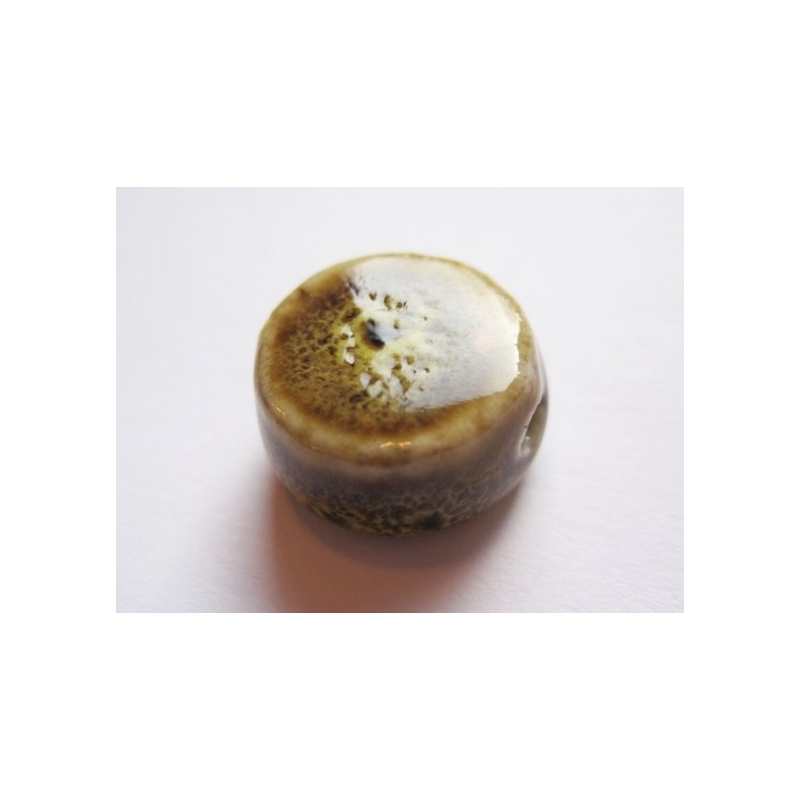 Porcelæns vedhæng - brun med et snert af gul. Str. ca. 35 x 30 x 15 mm. Hul.str.: ca. 3 mm. Prisen er for 1 stk.