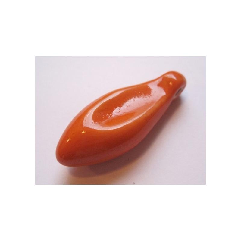 Dråbeformede porcelænsperler - rød. Str. ca. 15 x 40 x 11 mm. Hulstr. ca. 2 mm. Prisen er for 2 stk.