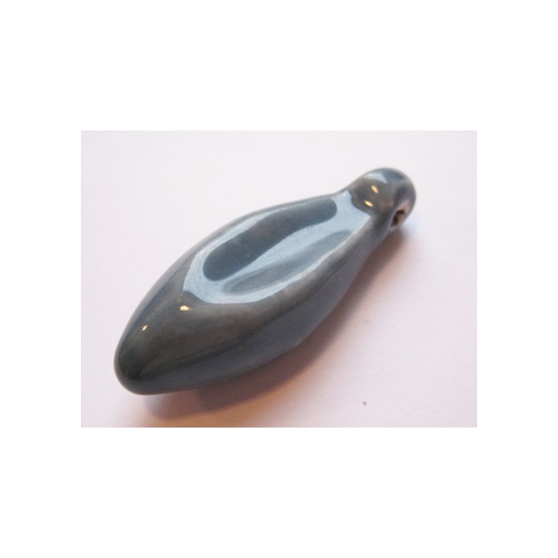 Ovale porcelænsperler - grå. Str. ca. 15 x 19 x 9 mm. Hul.str. ca. 2 mm. Prisen er for 2 stk.