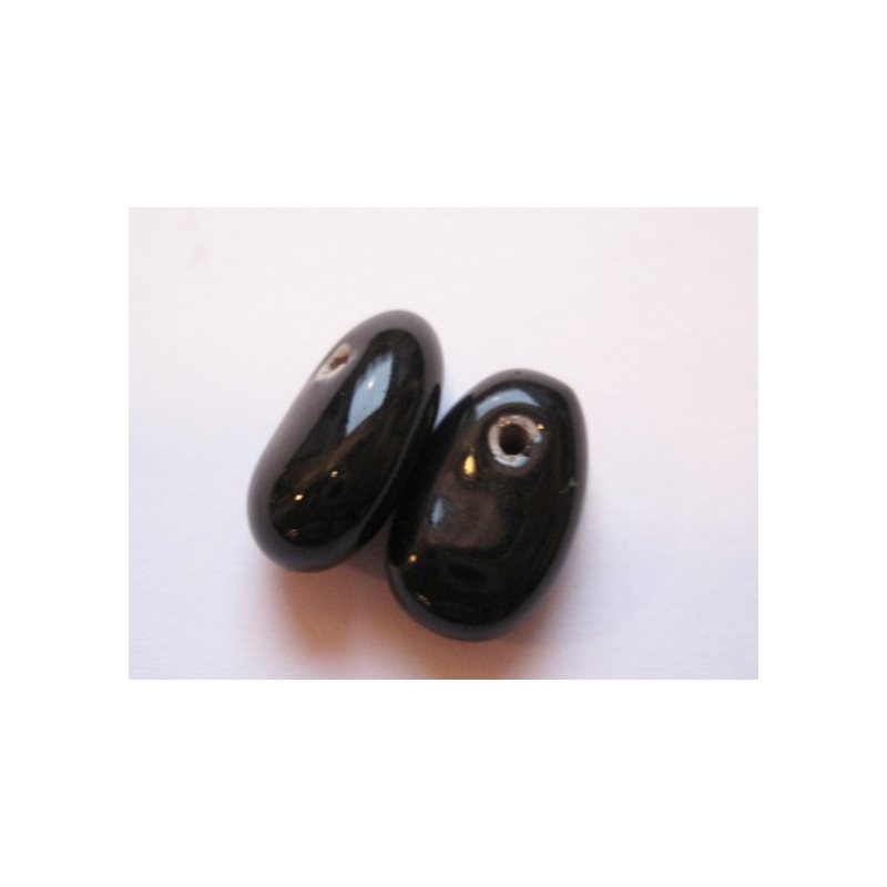 Ovale porcelænsperler - sort. Str. ca. 15 x 19 x 9 mm. Hul.str. ca. 2 mm. Prisen er for 2 stk.