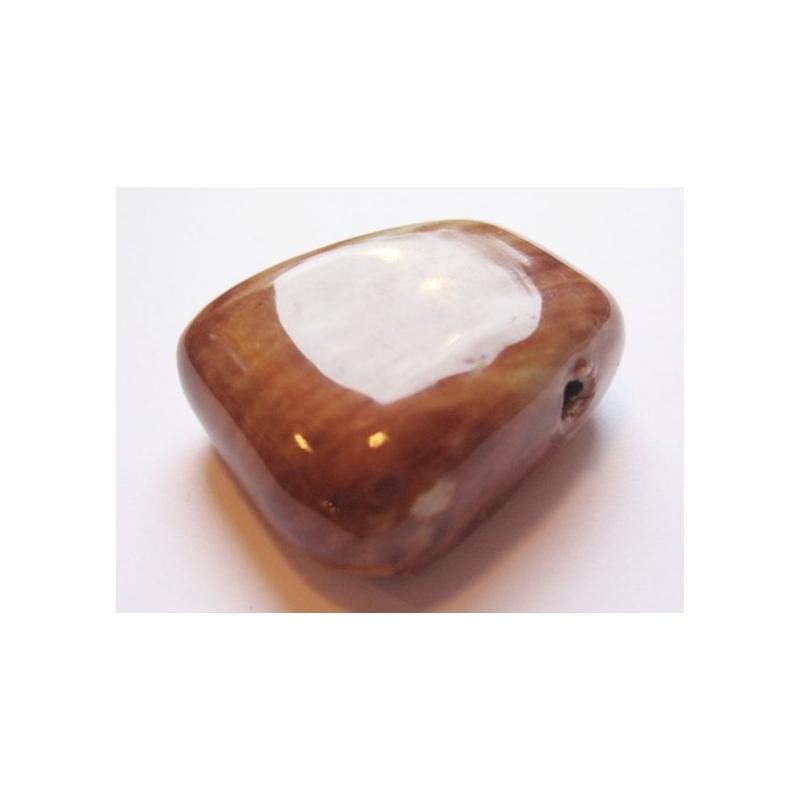 Porcelæns coins - brun med en snert af gul. Str. ca. 9 x 15 mm. Hul.str.: ca. 2 mm. Prisen er for 2 stk.