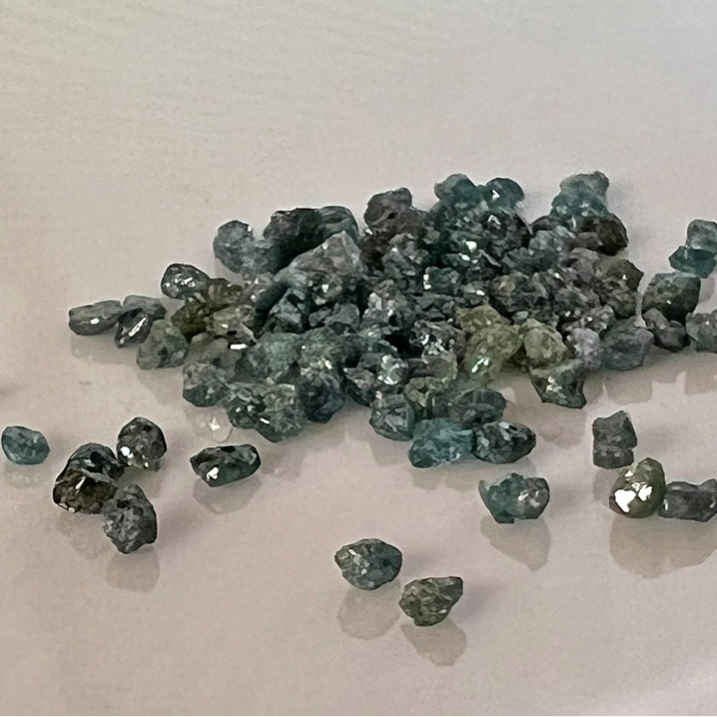 Ægte rådiamanter - grønne. Str. ca. 2-2,5 x 1,5-2 mmm. Hul str. ca. 0,3 mm. Prisen er for 10 stk.
