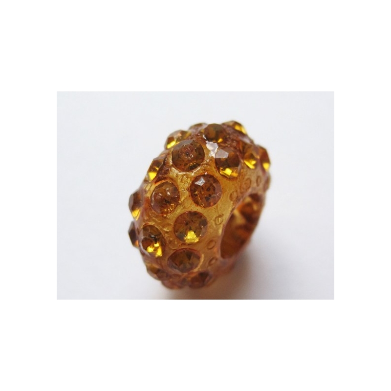 Orange resin rondel med rhinestone.