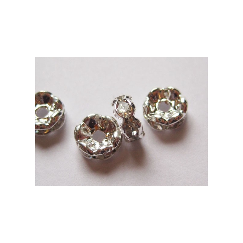 Sølvfarvede rondeller med klare rhinestone sten.