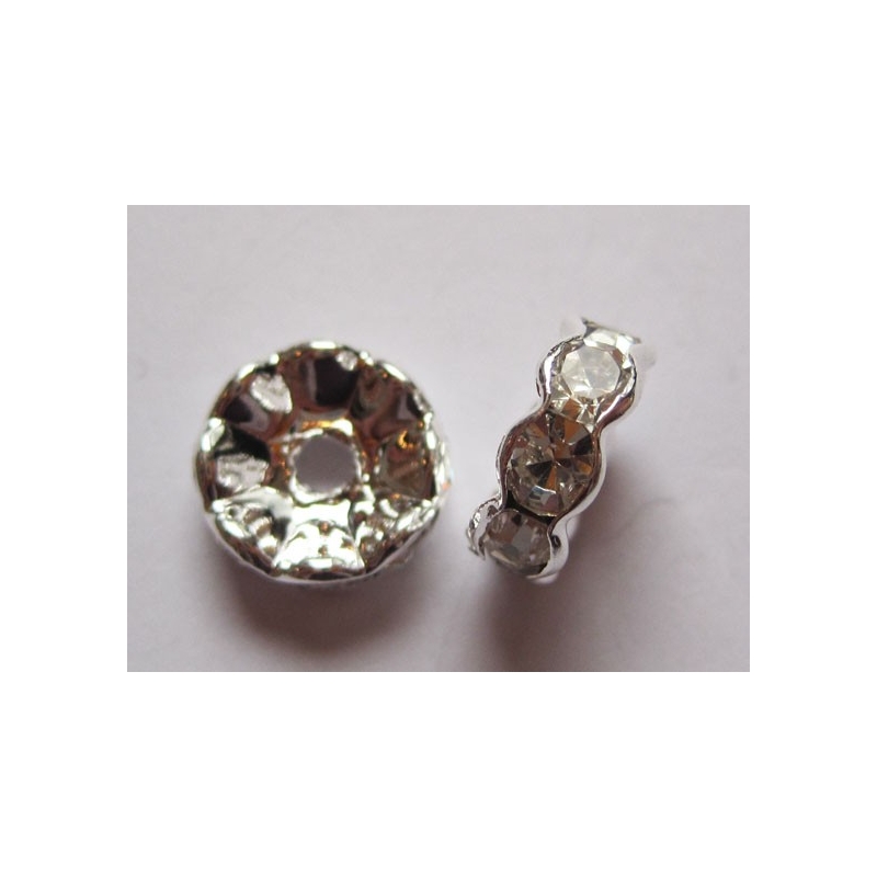 Sølvfarvede rondeller med klare rhinestone sten.
