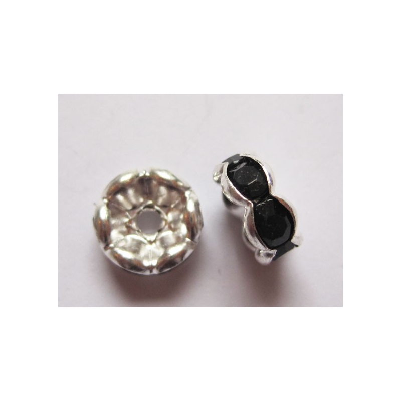 Sølvfarvede rondeller med klare rhinestone sten. Str. ca. 10 x 4 mm. Hulstr.: ca. 2 mm. Prisen er for 10 stk.