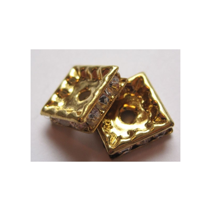 Guldfarvede firkantede rondeller med klare rhinestone sten.
