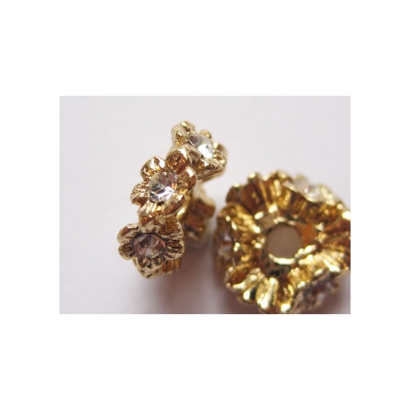 Guldfarvede blomster rondeller med klare rhinestone sten.