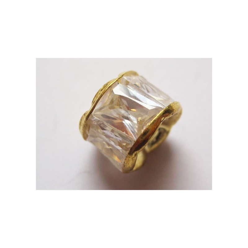 Guldfarvede firkantede rondeller med klare rhinestone sten. Str. ca. 8 x 8 x 3 mm. Hulstr.: ca. 1,1 mm. Prisen er for 4 stk.