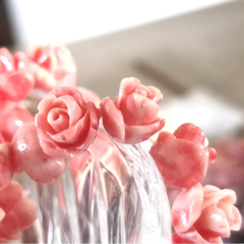 Lyserøde blomster af shell pearls - blomsterne er topboret/sideboret.