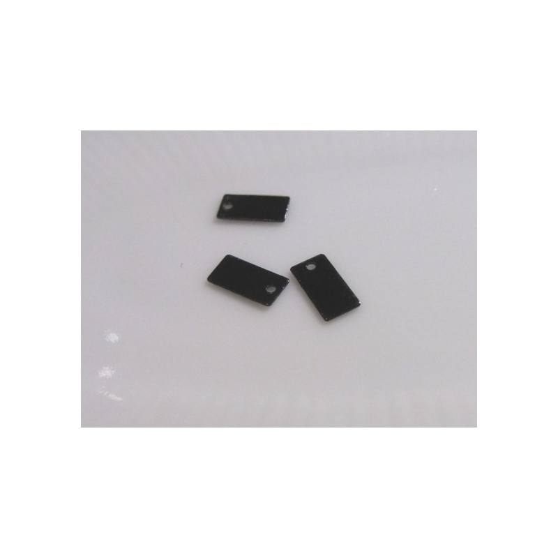 Stempelplade af sterling sølv. Str. ca. 8 x 4 mm. Tykkelse ca. 0,3. Hul str. ca. 0,5 mm. Prisen er for 1 stk.