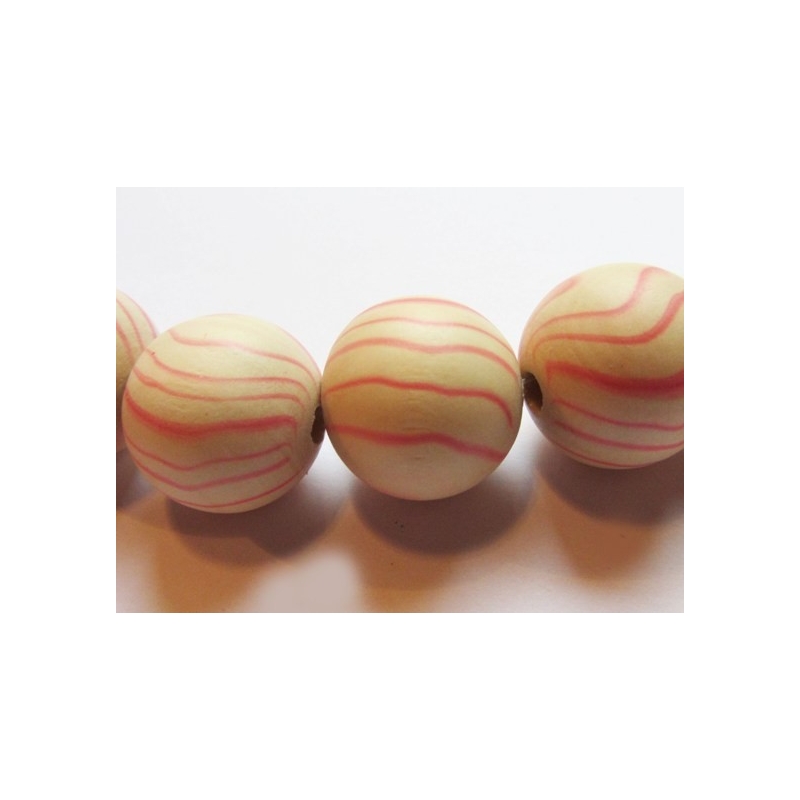 Runde træperler - natur/rød. Str. på perle: ca. 25 mm. Hulstr.: ca. 4 mm. Antal på streng: ca. 22 stk. Prisen er for 1 streng.