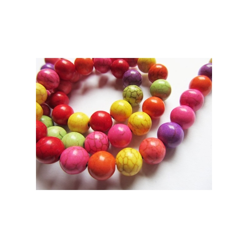 Runde turkise perler (indfarvet). Str.: ca. 10 mm. Prisen er for 1 streng med ca. 40 stk.