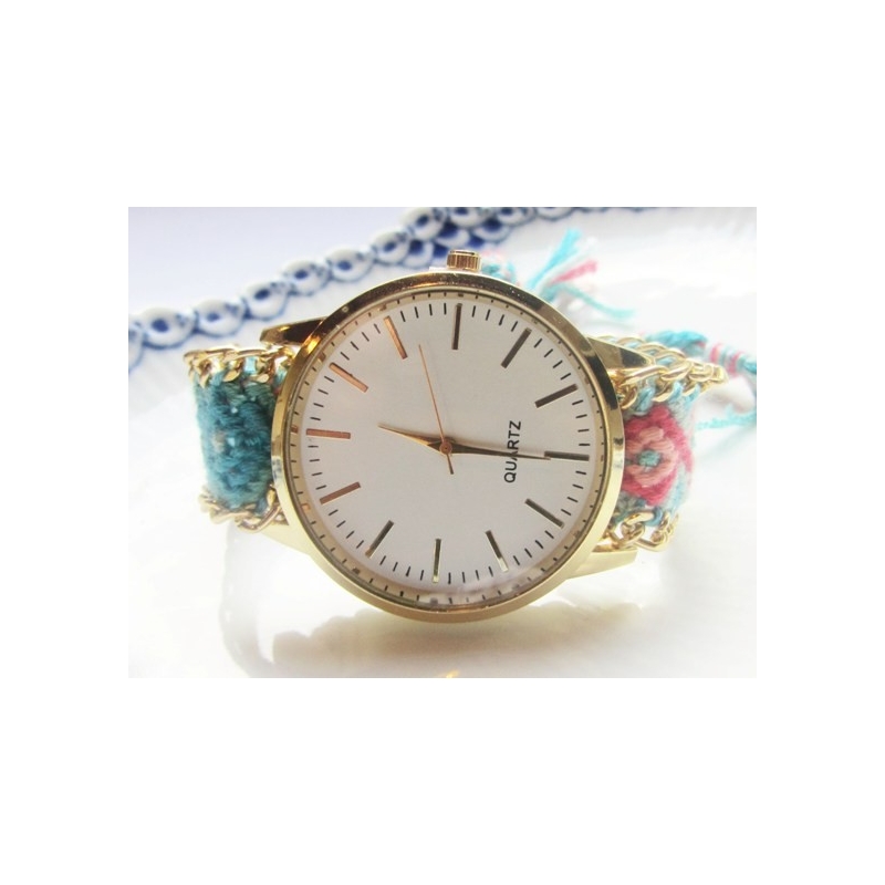 Urkasse - Quartz - med turkis farvet armbånd. Bagsiden af uret er af rustfrit stål. Str. på urkasse ca. 8 x 40 mm. Prisen er for 1 urkasse samt armbånd.