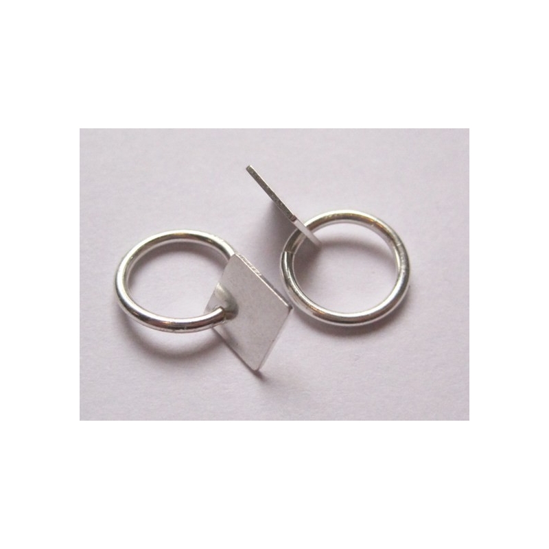 Stempelplade af rhodineret sterling sølv. Str. ca. 8 x 4 mm. Tykkelse ca. 0,3. Hul str. ca. 0,5 mm. Prisen er for 1 stk.