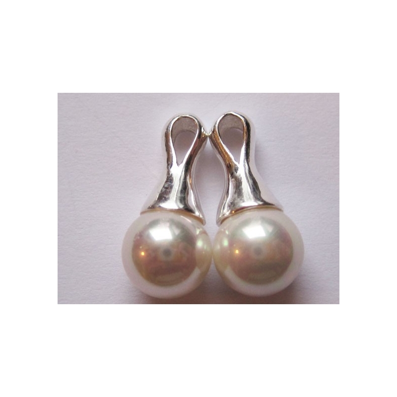 Vedhæng af sterling sølv med perler af bronze farvet perlemor. Str.: ca. 18 x 8 mm. Hulstr.: ca. 2 x 3 mm. Prisen er for 2 vedhæng.