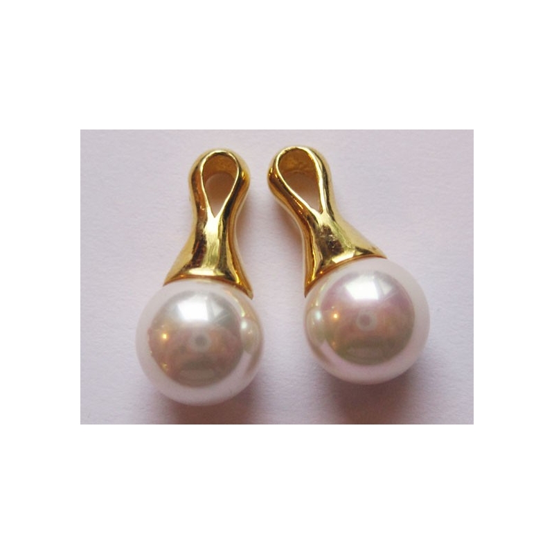 Vedhæng af forgyldt sterling sølv med perler af bronze farvet perlemor. Str.: ca. 18 x 8 mm. Hulstr.: ca. 2 x 3 mm. Prisen er for 2 vedhæng.
