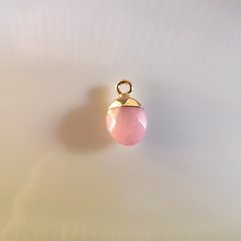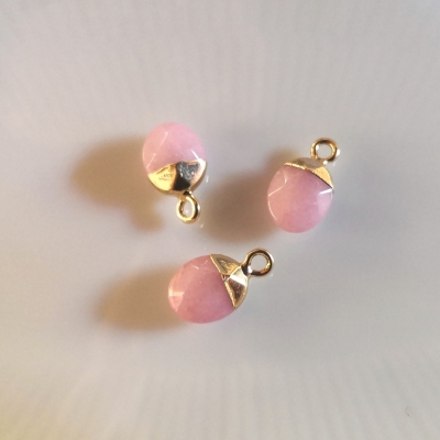 Vedhæng af facetslebet jordbær quartz. Str. incl. vedhæng ca. 20 mm. Hul str. i øje ca. 1,5 mm. Prisen er for 1 stk.
