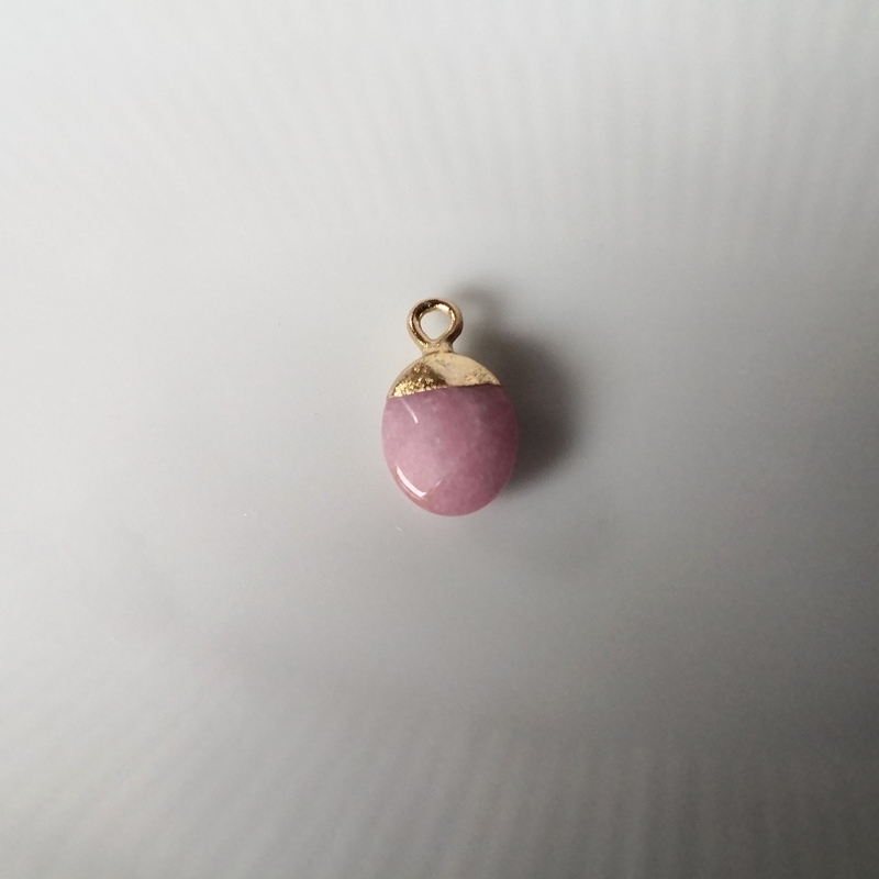 Vedhæng af facetslebet jordbær quartz. Str. incl. vedhæng ca. 20 mm. Hul str. i øje ca. 1,5 mm. Prisen er for 1 stk.