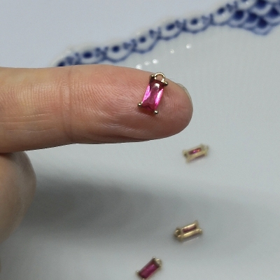 Superflot vedhæng af forgyldt sterling sølv med rådiamant. Bemærk at de er håndlavede, så de vil derfor ikke være ens. Str. ca. 3 - 4 mm. Hul str. i øje ca. 1,2 mm. Prisen er for 1 stk.