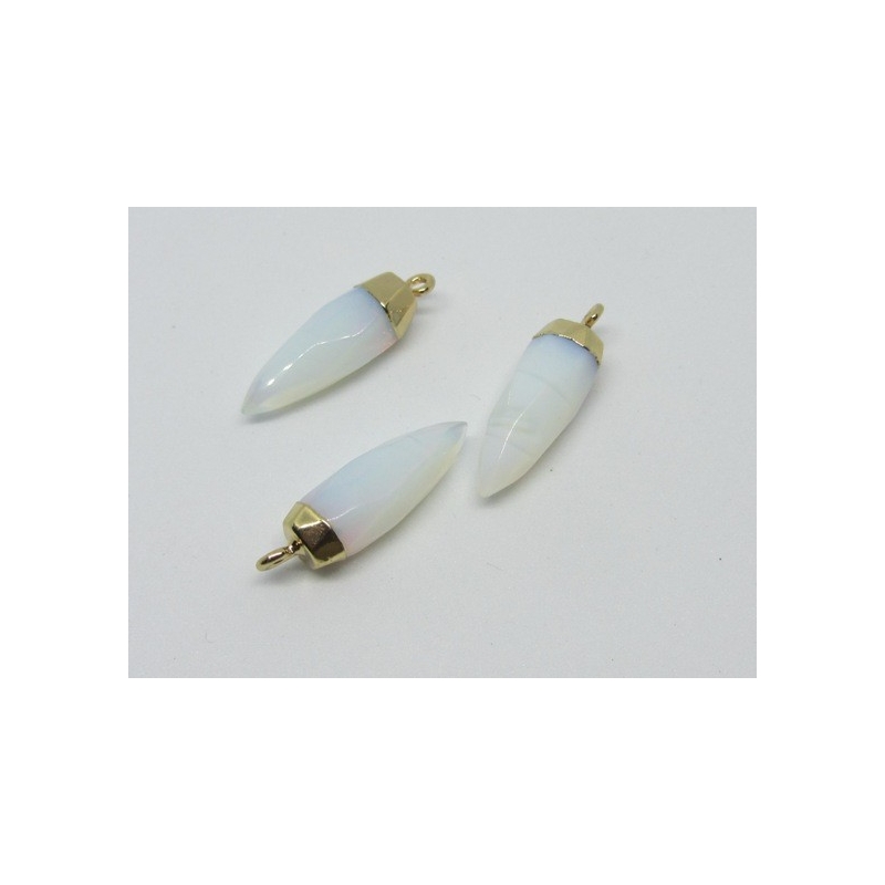Vedhæng af facetslebet månesten. Str. incl. vedhæng ca. 20 mm. Hul str. i øje ca. 1,5 mm. Prisen er for 1 stk.