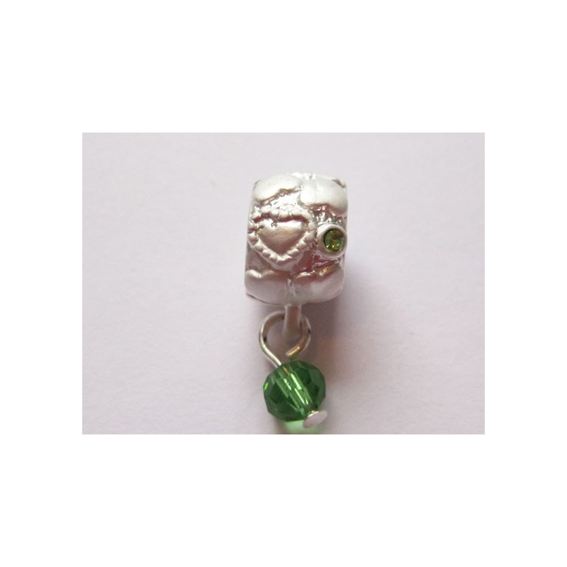 Frosted sølvfarvet vedhæng med facetslebet grøn glasperle.