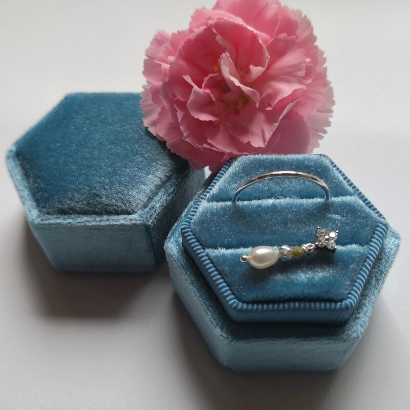 Eksklusiv velour smykkeæske - turkis. Æsken kan bruges til ørestikker, fingerringe og vedhæng. Str. ca. 4,5 x 4,8 cm. Prisen er for 1 stk.