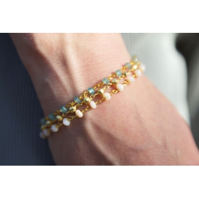 Top lækker viklet kæde af forgyldt sterling sølv med indiske håndlavede sten af facetteret labrodorit. Du får 17 cm. kæde - som er den typiske længde, der skal bruges til et armbånd samt lås og øsken ... både lås og øsken er lige til at sætte på kæden. Str. på labrodorit ca. 2 mm. Prisen er for 17 cm. kæde samt lås og øsken.